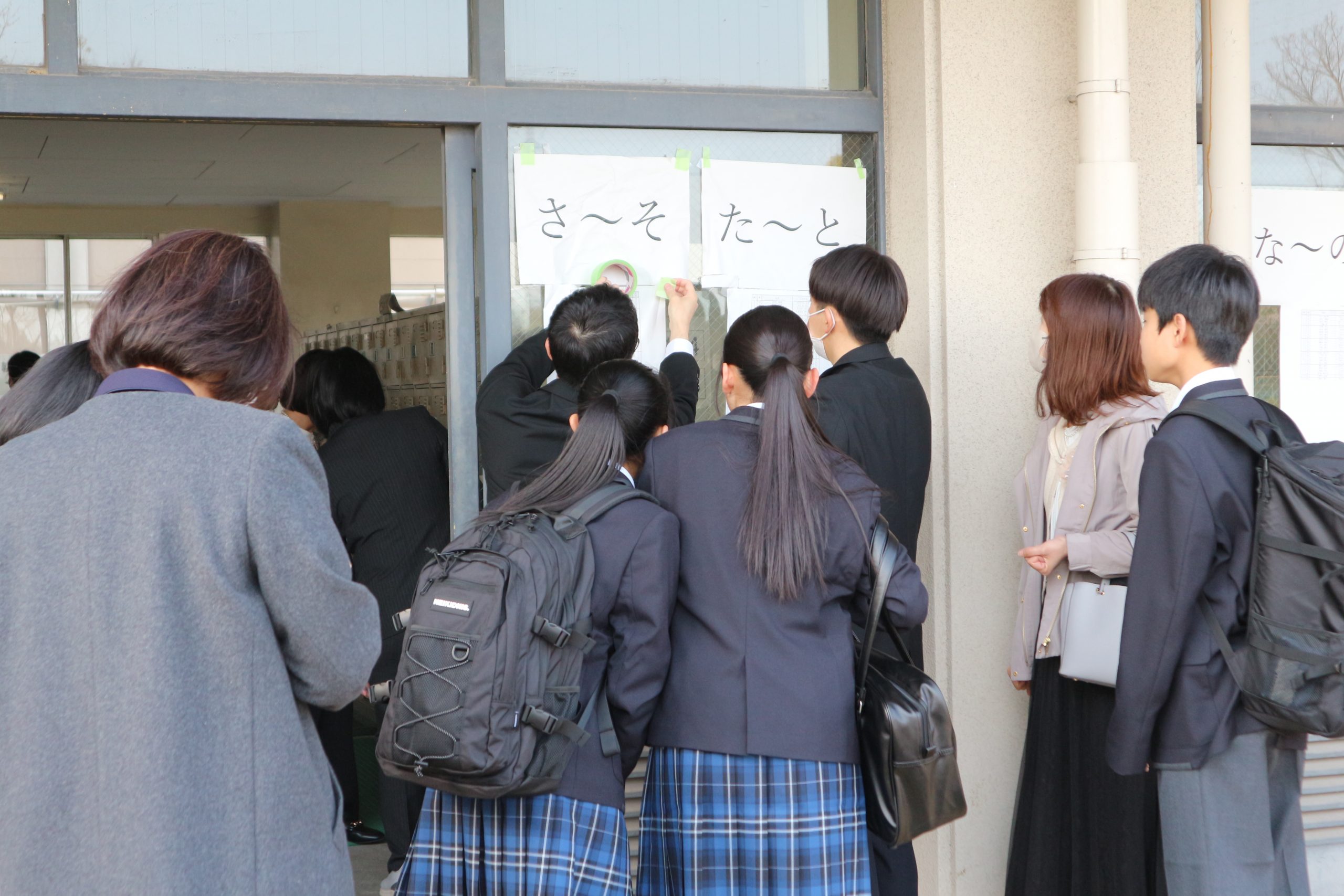 登校した新入生は昇降口でクラスを確認して教室に入ります。